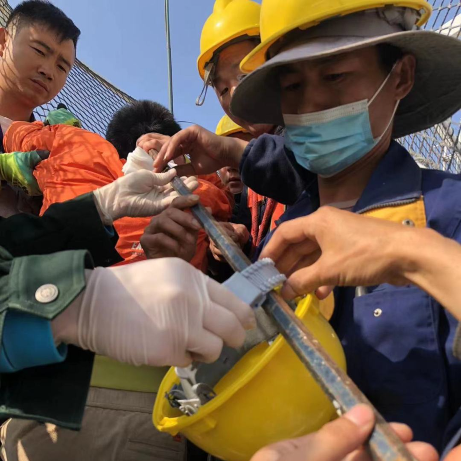 120到达现场后被当时的触目惊心的场景深深震撼,医生判断患者存在严重颅脑损伤,不可贸然拔除钢筋,立即对患者伤口进行包扎,同时取下患者安全帽并固定钢筋,避免钢筋活动加重颅脑损伤。