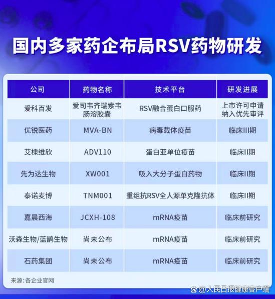 据人民日报健康客户端不完全统计,目前全球在研的RSV疫苗有近70种,国内多家企业也已布局,其中有五款相关产品已进入临床研究阶段。