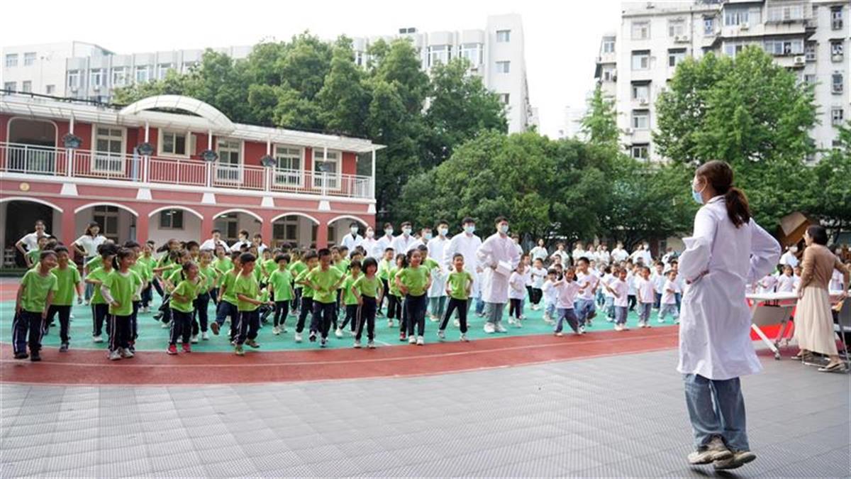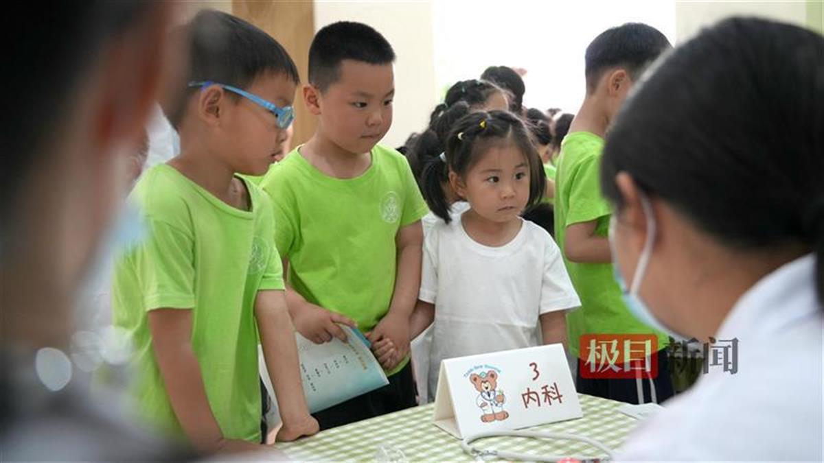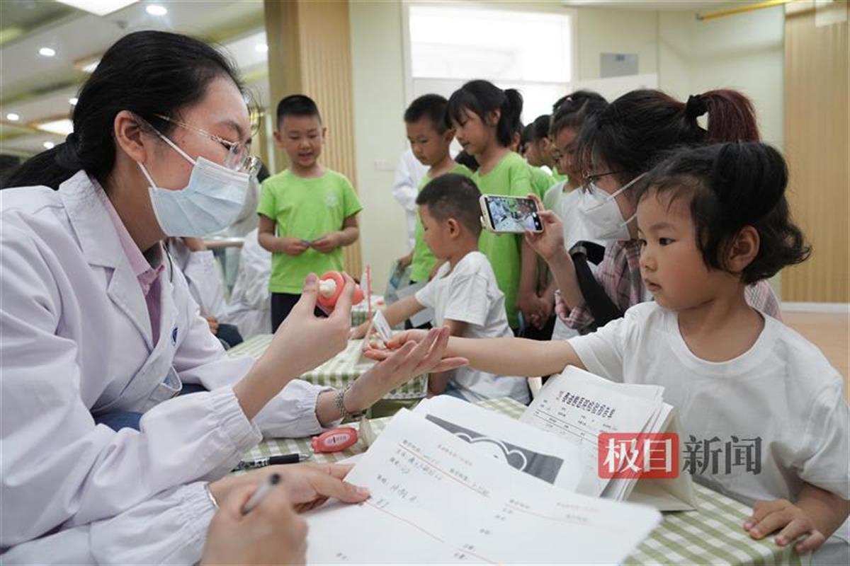 “本次活动采取了‘大班+小班’结对,组成‘就医家庭’的形式,在幼儿园老师及志愿者的引导下,有序进场模拟就医,这样也能更接近真实的就医场景。活动分4个批次,共计覆盖200余位小朋友。”同济医学院幼儿园教学园长刘敏介绍。