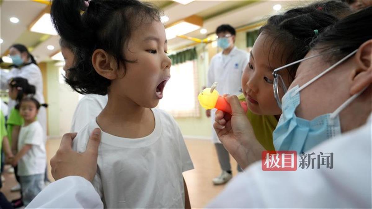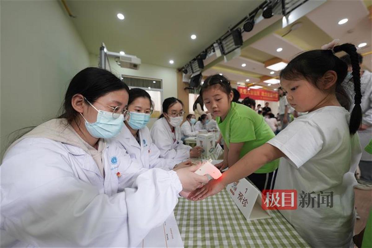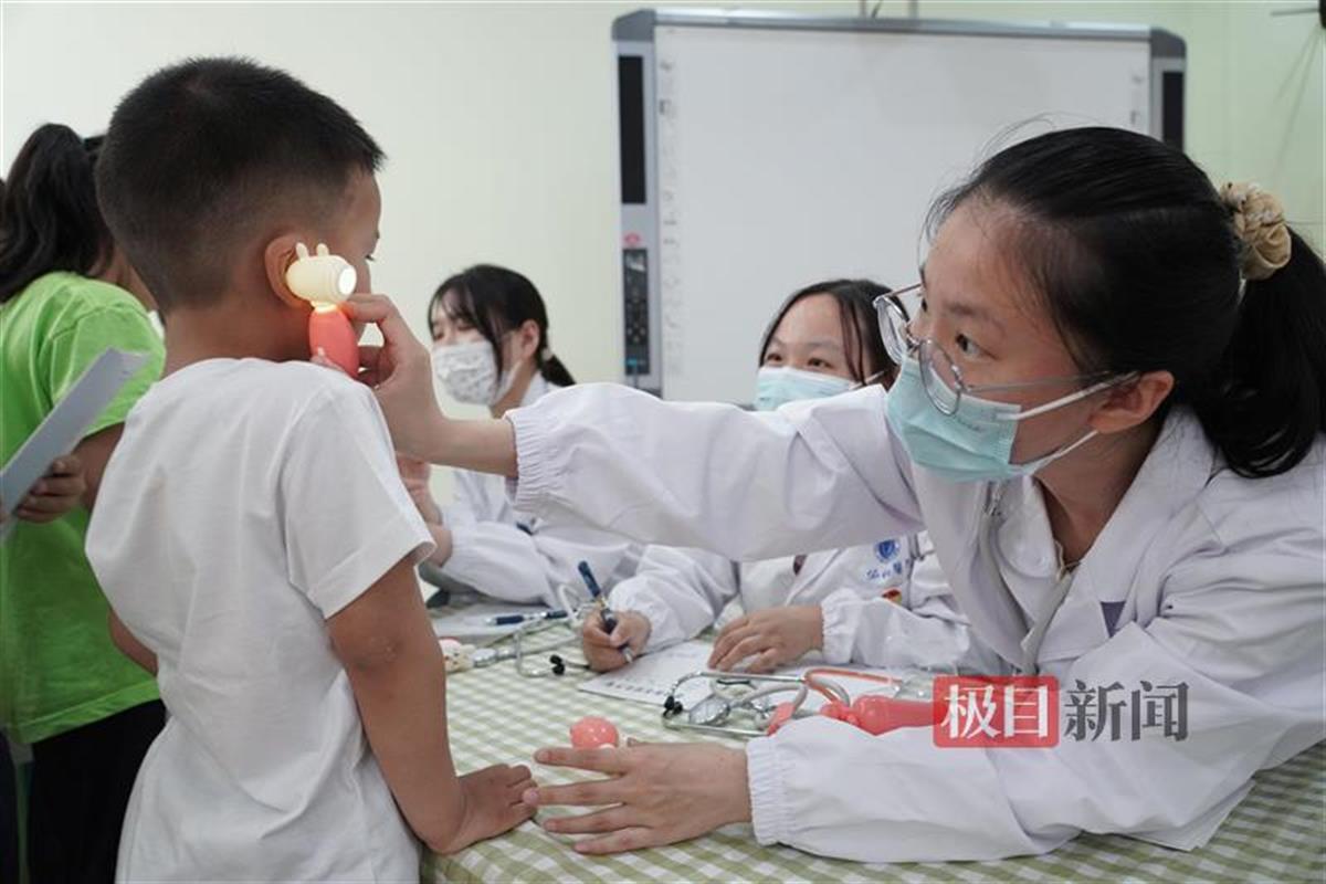 活动现场,孩子们玩得很开心。“‘咚哒、咚哒’,这是我的心跳声呀”“上刷刷、下刷刷,两边都要刷一刷,我以后一定好好刷牙”“我想再来玩一次”……“泰迪熊医院”模拟的体温计、血压计、X光机、输液器、抽血针等,让他们正视疾病、不再害怕看病问诊,也让小朋友认识医生、了解医疗操作和医疗器械,减轻“医疗恐惧”。活动负责人李淳同学说,大家采取了讲解和志愿者演示的方式,能更好地与孩子们互动,起到示范作用。