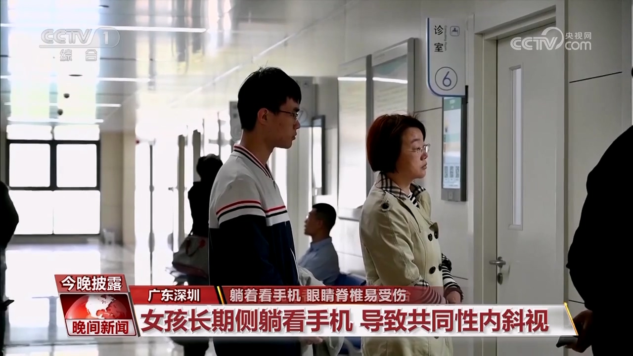 女孩长期侧躺看手机导致共同性内斜视