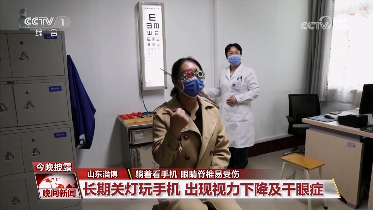 淄博市中心医院眼科主任王少鹏:另外侧躺看手机可能还导致一个潜在的危害,就是由于两个眼距屏幕的距离不一样,可能导致两个眼的屈光状态会有差别,比如说一只眼近视重一点,一只眼近视轻一点。