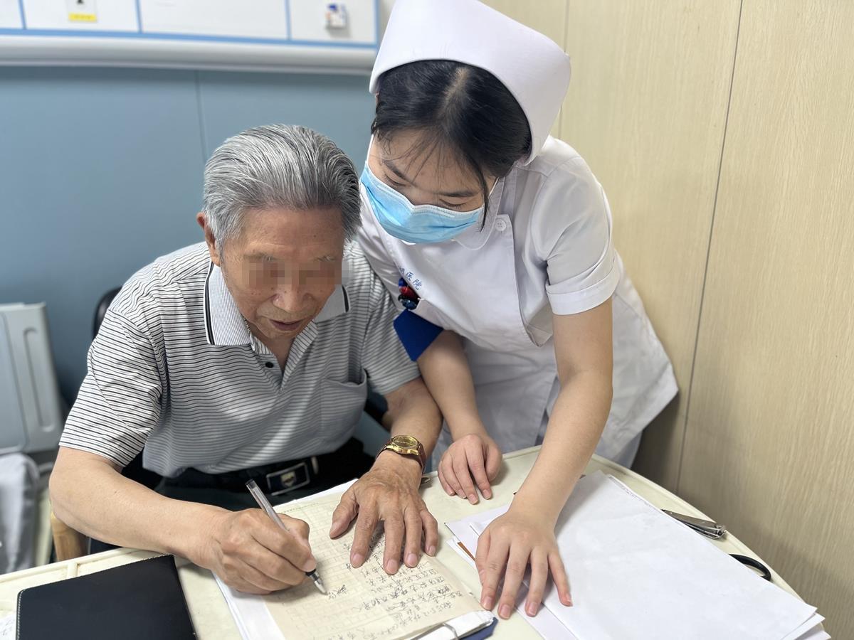 护士们看到梁爹爹的“痴迷”已经对身体产生不好的影响,又不忍心打消他的积极性,于是一边劝他要注意劳逸结合,一边加强对他血压的监测,尤其是为了不让他“熬夜”,护士们加强对他的夜间查房频次,只要发现梁爹爹睡晚了,就赶紧进去劝他早点睡觉。
