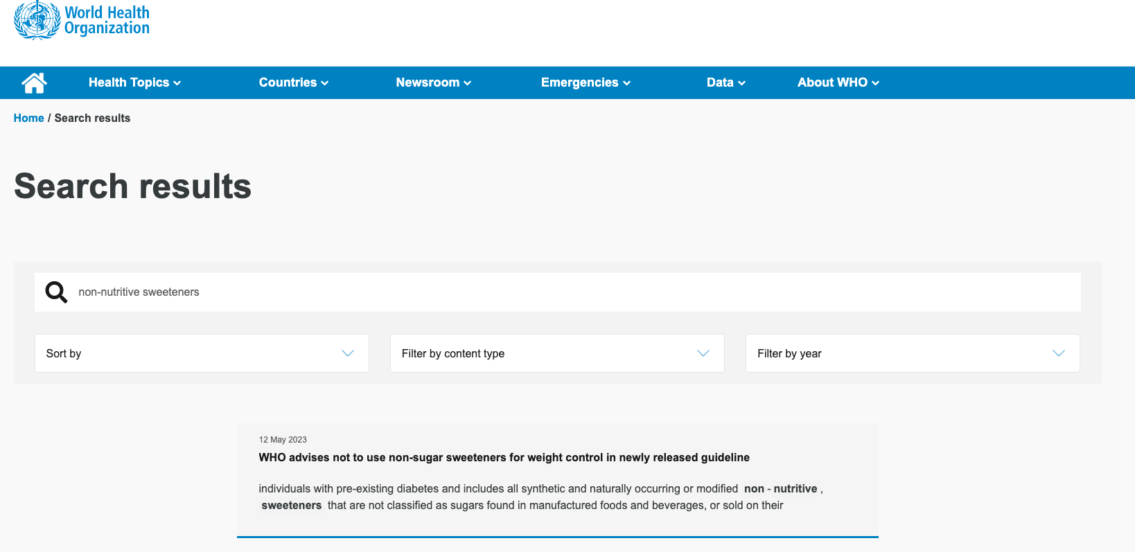 图:世界卫生组织在其官网中首次提及非营养性甜味剂(non-nutritivesweeteners)这一概念