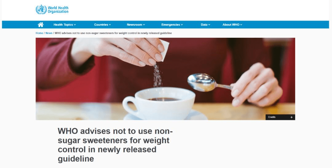 5月15日,世界卫生组织(WHO)发布了关于非糖甜味剂的新指南《WHOadvisesnottousenon-sugarsweetenersforweightcontrolinnewlyreleasedguideline》,指南中提到:建议不要使用非糖甜味剂来控制体重或降低非传染性疾病风险。指南表示,有证据表明,使用非糖甜味剂对减少成人或儿童的体脂没有任何长期益处,长期使用非糖甜味剂可能会产生潜在的不良影响。