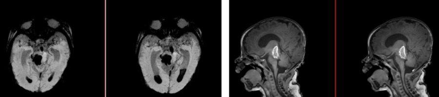 经过新生儿重症监护室积极治疗后,甜甜的病情暂时趋于稳定,但颅脑MRI及CTA检查结果显示情况不容乐观,脑干、丘脑出血破入脑室。虽然血肿使组织结构不易辨清,但经验丰富的王广宇仍从影像学上“嗅出”了异常。磁共振及CTA检查结合临床,考虑“脑干海绵状血管瘤出血”。