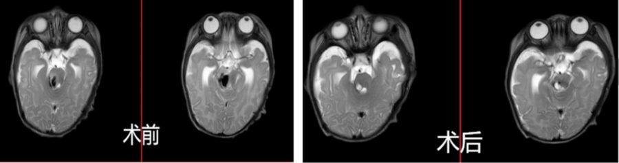 术前术后颅脑磁共振对比显示病变切除良好