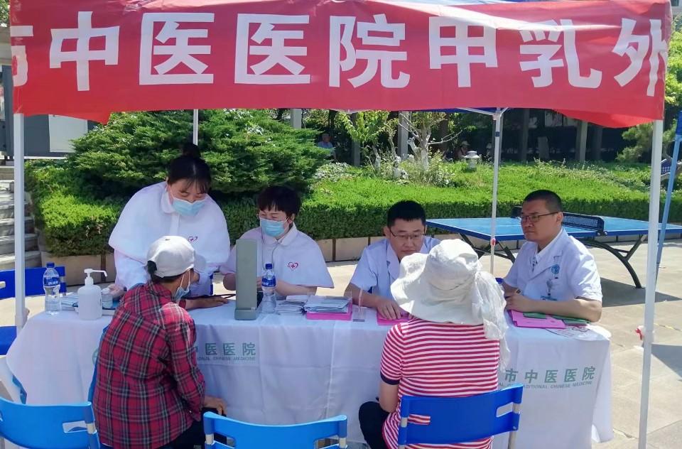 甲状腺乳腺外科主治中医师王向均为前来咨询的居民脉诊,舌诊,辨证论治,提供中医诊疗指导,引导居民树立保健意识,对于疾病要“早发现,早诊断,早治疗”。甲状腺乳腺外科护士长崔振华带领护理团队开展测血压、耳穴压豆等服务,发放相关科普宣传资料,普及中医药健康保健知识。