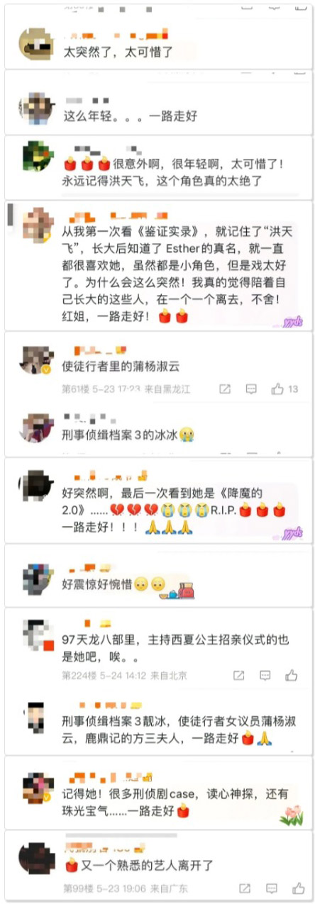 噩耗传来后,TVB对她离世深表惋惜,并向其家人致以深切慰问。香港知名艺人马浚伟在TVB社交媒体留言“RIPEsther,静待他日再相见”。网友们留言表示“很多港剧都见过她”“又是一个熟悉的老面孔,一路走好”。