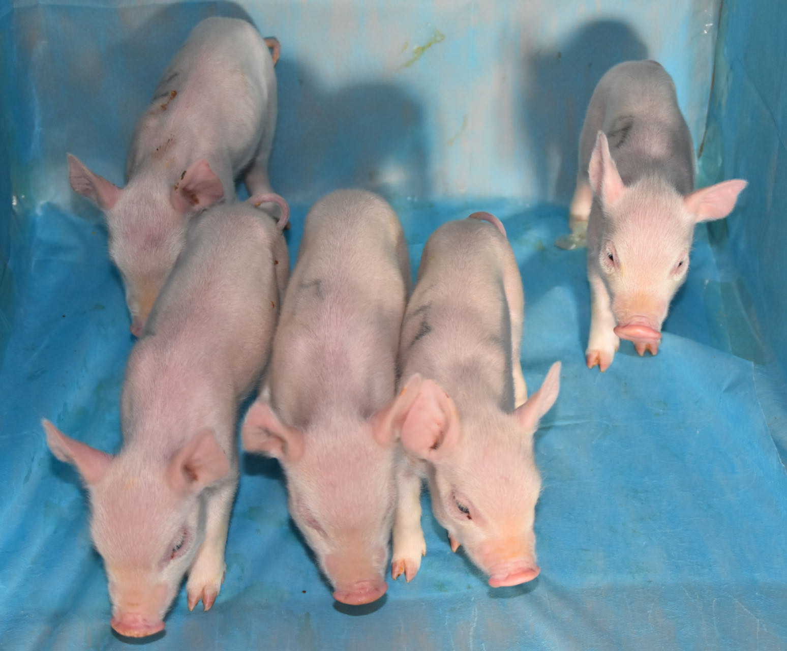 吉林大学重庆研究院动物科技研究中心培育的PCBP1基因修饰抗猪瘟猪。受访者/供图