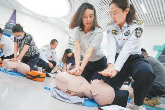 5月12日全国防灾减灾日,北京急救中心讲师为北京市少年宫100名教职员工进行校园急救技能培训。北京日报记者方非 摄