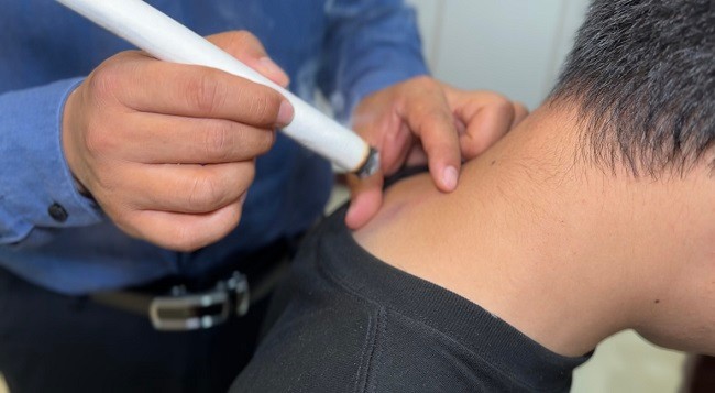 艾灸时有哪些注意事项?臧云彩表示,灸时要避免艾条停留在一个地方,可以用拇指和食指放在穴位两边,以自己的手感知温度。灸法有回旋和雀啄两种,回旋就是围绕穴位进行转圈,雀啄则是一高一低,两种方式既作用于穴位,又可避免烫伤。