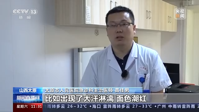 太原市人民医院急诊科主治医师高佳男:如果中暑,很快转移到阴凉通风处,适当多补水,用一些办法降温。如果症状加重,比如出现了大汗淋漓、面色潮红,一定要去及时就诊。