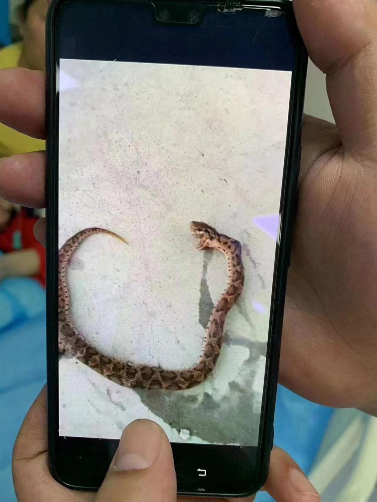 冉冉妈妈及时拍下咬伤冉冉的蝮蛇照片