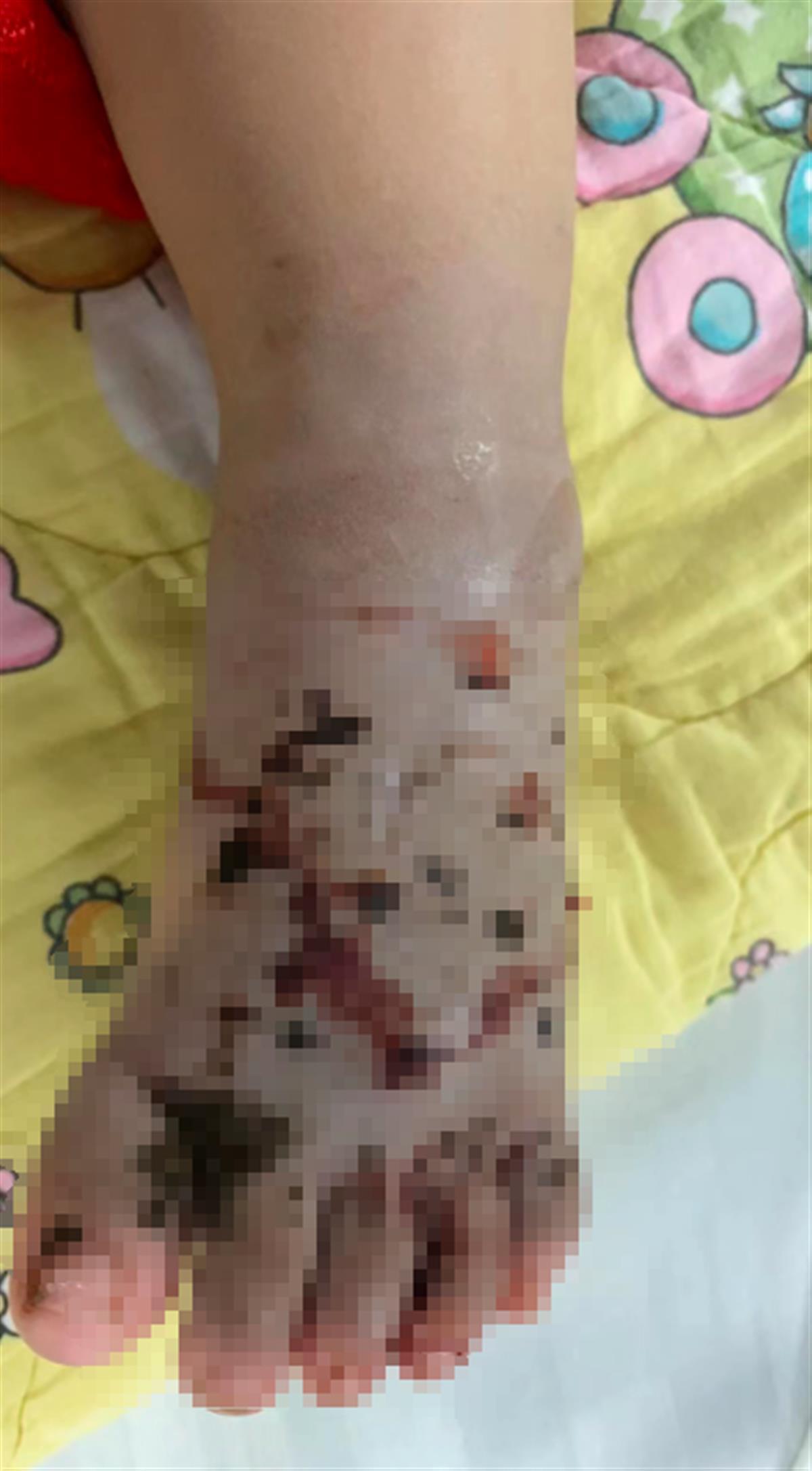 进入儿童重症医学科后,医生立刻为冉冉进行了再次的清创术,抗感染,补液及对症支持治疗。经过一天的救治,冉冉的左足肿胀青紫较前缓解了许多。