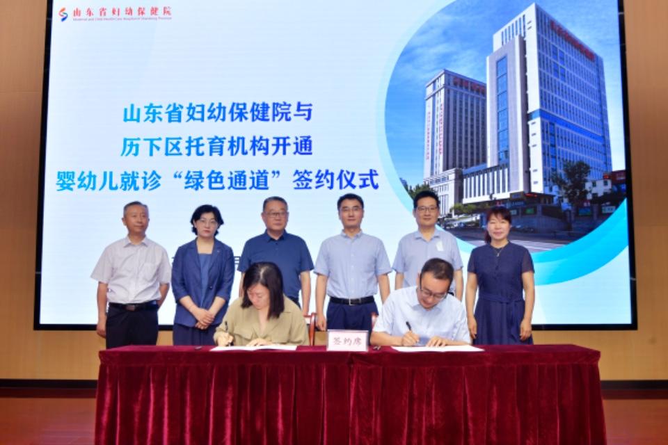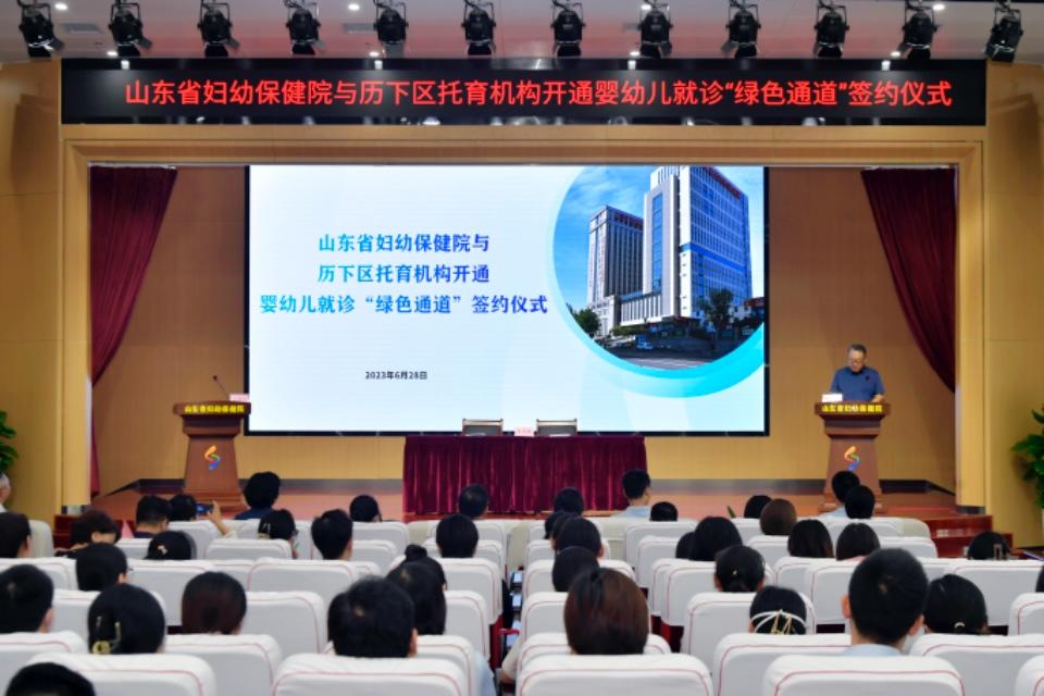 6月28日上午,山东省妇幼保健院为历下区托育机构开通婴幼儿就诊“绿色通道”签约仪式举行。现场参加签约仪式的有山东省卫生健康委妇幼健康处副处长聂雷;济南市卫健委一级调研员王一龙,人口家庭处处长郭亚囡;历下区卫健局党组书记、局长仵爱之,正处级领导干部周扬帆;山东省妇幼保健院(山东省妇女儿童医院)党委书记郑世存,副处级领导干部王军等。以及历下区卫健局、历下区妇计中心相关工作人员、历下区34家托育机构代表,医院儿内科、儿外科、中医科等临床科室及部分职能科室代表参加。