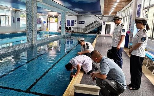 6月26日,安徽省合肥市庐江县卫健委会同县教体、市监等部门执法人员对全县游泳场馆卫生状况进行专项监督检查。巢志斌图