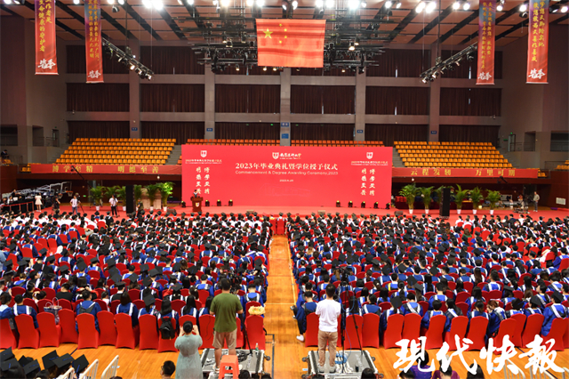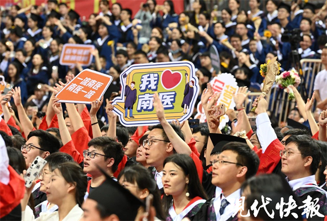 现代快报讯(通讯员郭原君记者李楠)6月28日,南京医科大学举行2023年毕业典礼暨学位授予仪式。今年,南医大共有2406名本科生、2225名研究生、59名留学生顺利完成学业,踏上新的人生征程。值得一提的是,毕业典礼开场前,一场超有氛围的歌曲串烧惊喜上演。现场师生齐唱一首歌,同祝毕业快乐。