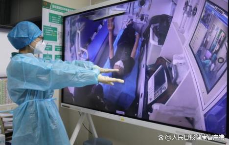 湖北武汉市120急救医生在救护车上与医院“连线”,线上指导诊疗急性中风。武汉发布图