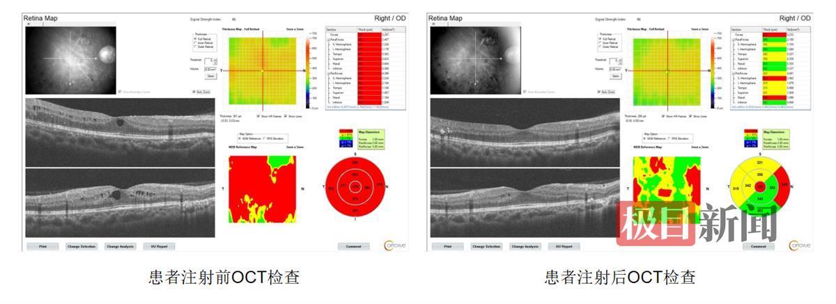 7月6日,医院复查显示,张先生双眼视网膜黄斑水肿明显减退,视力得到明显改善。