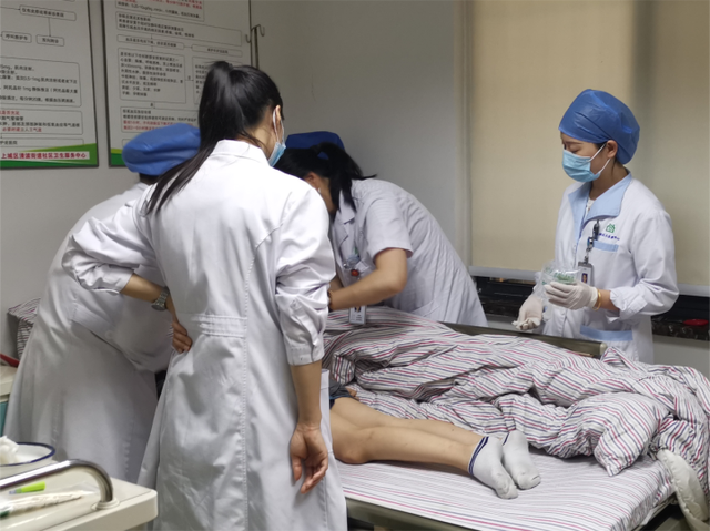 当时,张奶奶意识不清,浑身时不时地抽搐,全身大量出汗,体温高达40.2℃。结合其它指标考虑是热痉挛,医护随即开通两路静脉通路快速补液,采取了降温、护脑、抗惊厥等救治措施,但情况不容乐观,经一番诊治后,送ICU进一步对症治疗。