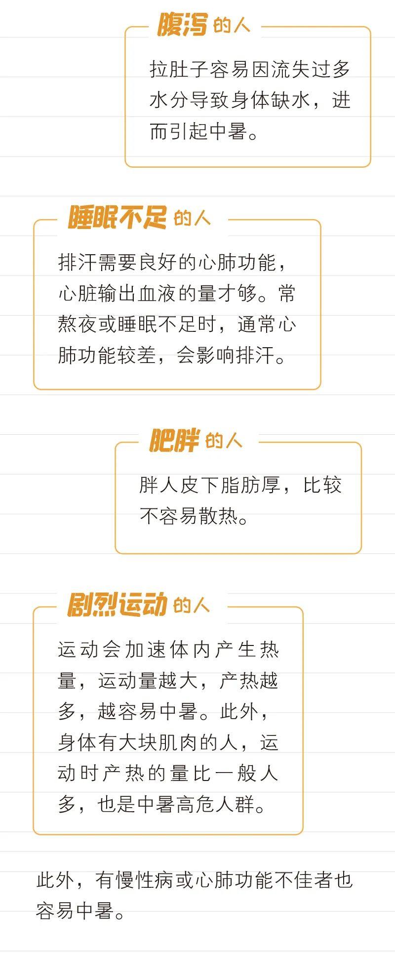 热射病:由于高温引起体温调节中枢功能障碍。表现为突然发病,体温迅速升高可达40℃以上,皮肤红热且干燥无汗,怕冷及意识模糊,口齿不清,不省人事。症状最为严重,若救治不及时,可导致死亡或残疾。