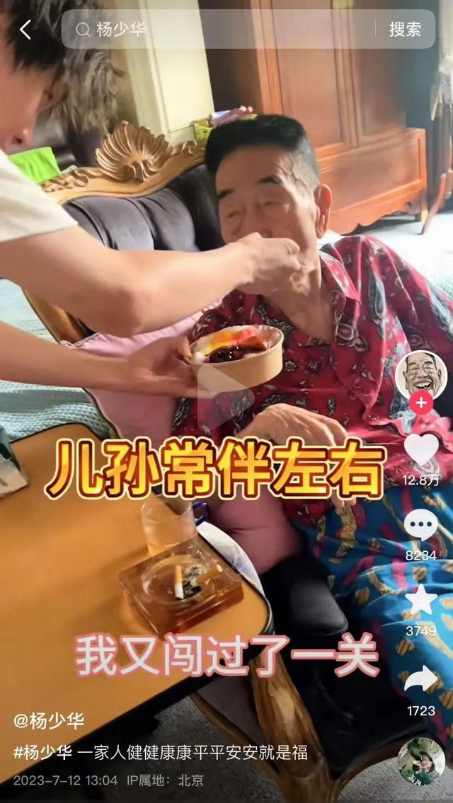 在视频中,杨少华透露自己因为血压太高而住院,把家人们急坏了,在家人们的悉心照料下闯过了这一关,还感慨:哪有比一家人健健康康更重要的事情呢,自己也努努力,少给他们添麻烦,争取再多活上几年。