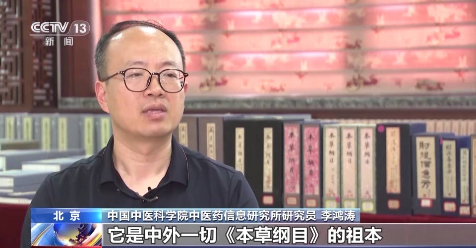中国中医科学院中医药信息研究所研究员李鸿涛:它是中外一切《本草纲目》的祖本,也就是说《本草纲目》的刊印和流传都是从这个版本始源的,尤其是《本草纲目》所反映的,它的科学的分类方法,反映了生物进化的自然规律,而且它的分类法要比西方的植物分类学家林奈的《自然系统》中所记载的分类要早一个多世纪。