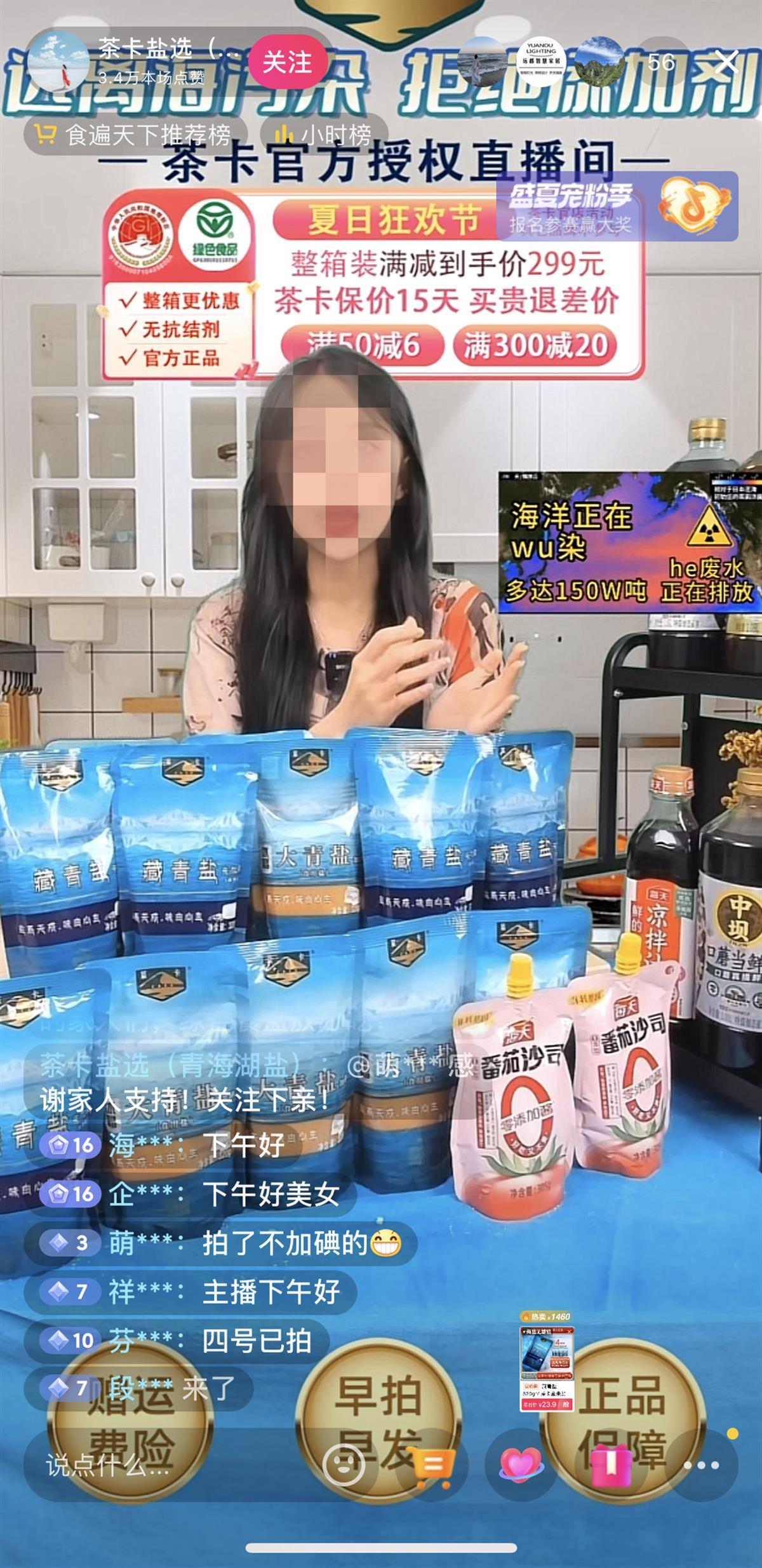 虽然销售的品牌各不相同,但主播们无一例外地宣传海盐或被污染,建议网友们多囤一些湖盐或井盐,最好以箱为单位来购买。