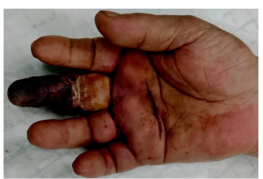 为了保住吴先生的性命,医生给他做了中指截肢手术。