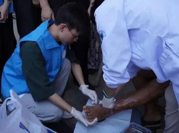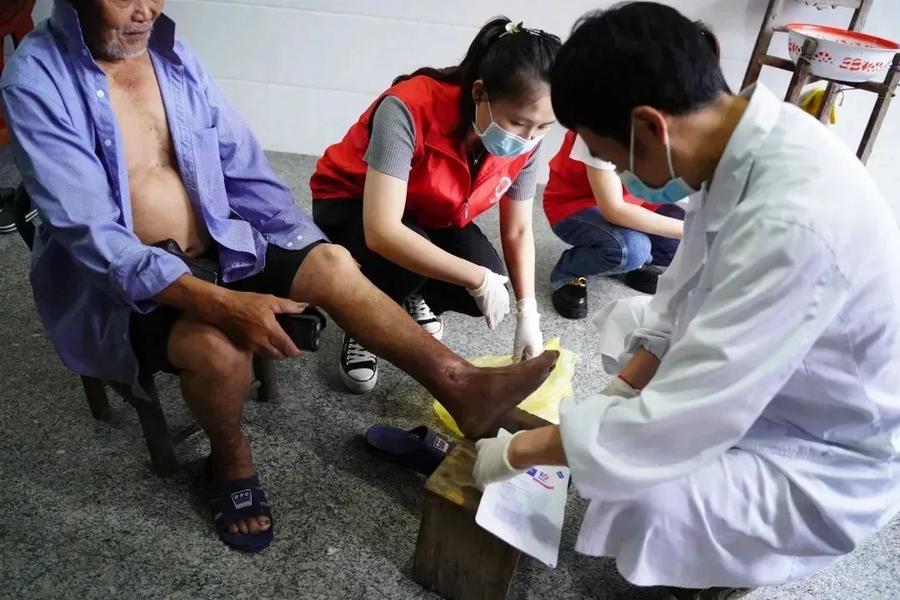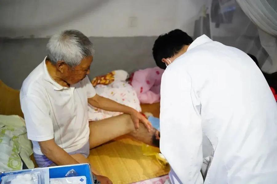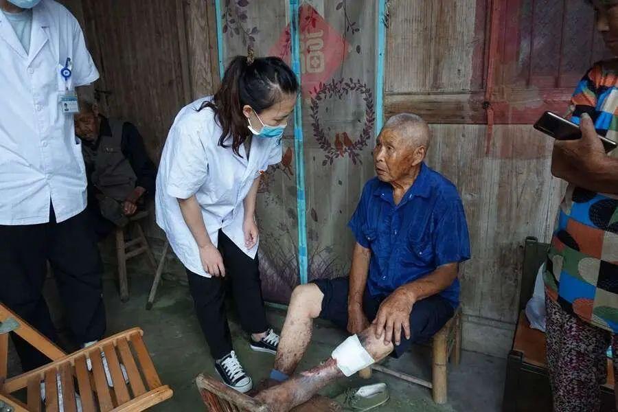 “白翼”志愿服务队的队员到家中为老人清创。(图片来源:中国青年报)