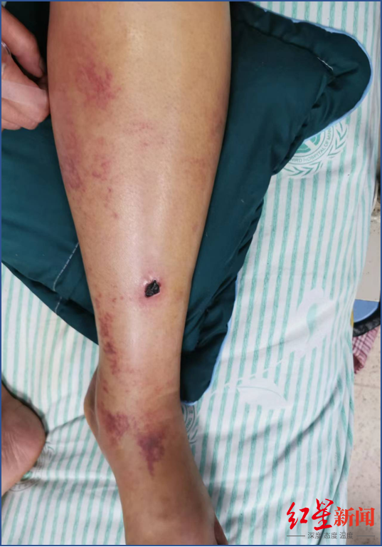 ▲被蛇咬伤后的伤口