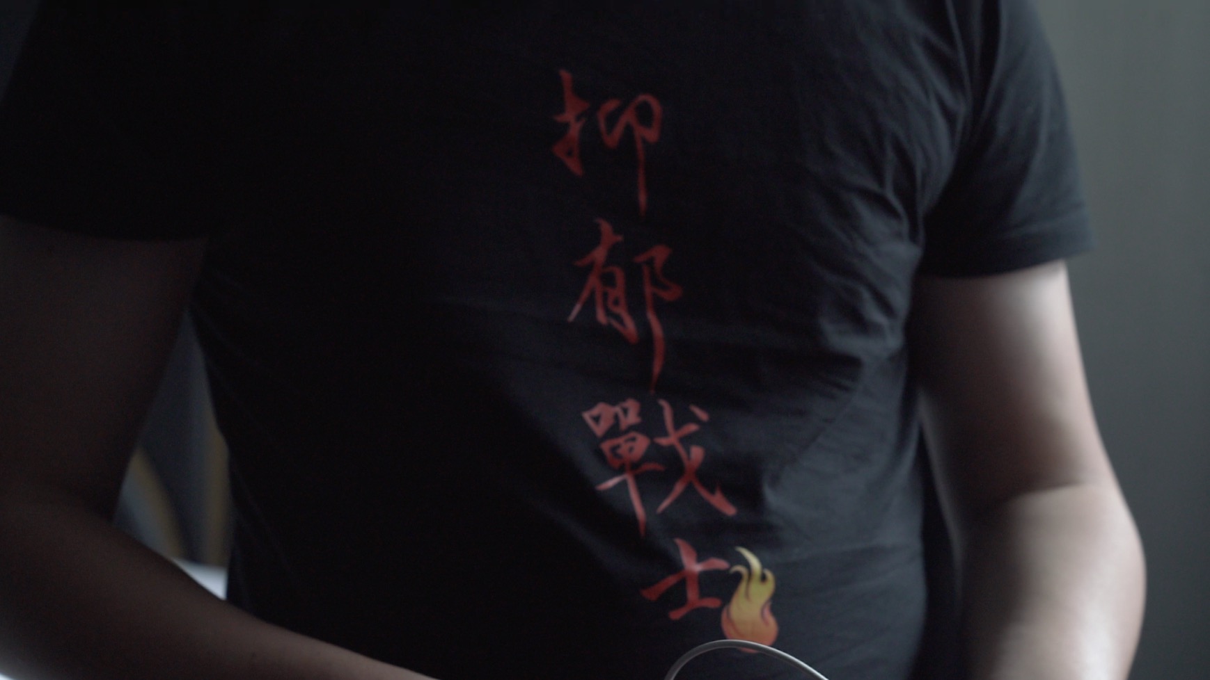 胸前印着“抑郁战士”的黑色T恤。本文图片均为澎湃新闻记者何锴图