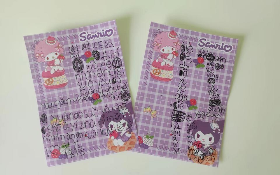 蓓蓓近日来到烟台市口腔医院卧龙分院,以往总是会用热情的笑脸向大家打招呼的她这次却有些害羞。“这是送给你们的礼物。”她将两张漂亮的信纸递给了前台导医。信中用拼音写到:感谢迟梦超阿姨与苏小钦阿姨,谢谢口腔医院所有的叔叔阿姨,祝你们平平安安、快快乐乐。