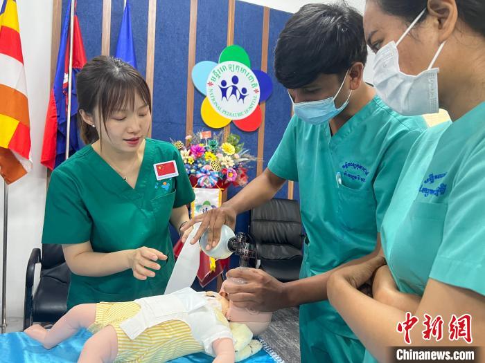 湖南省儿童医院医生曾铮在柬埔寨国家儿童医院指导新生儿复苏术。陈立健摄