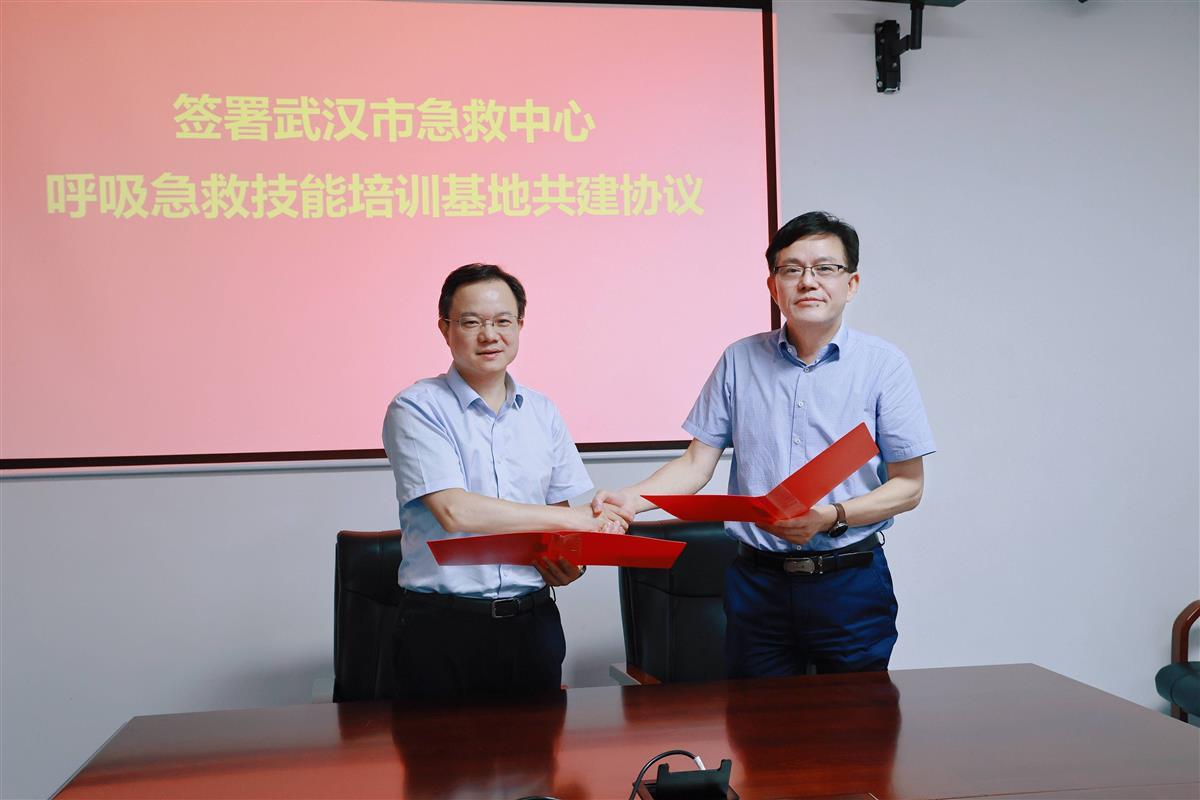 9月28日下午,武汉市急救中心和武汉市武昌医院签订了呼吸急救技能培训基地共建协议,并现场授牌。
