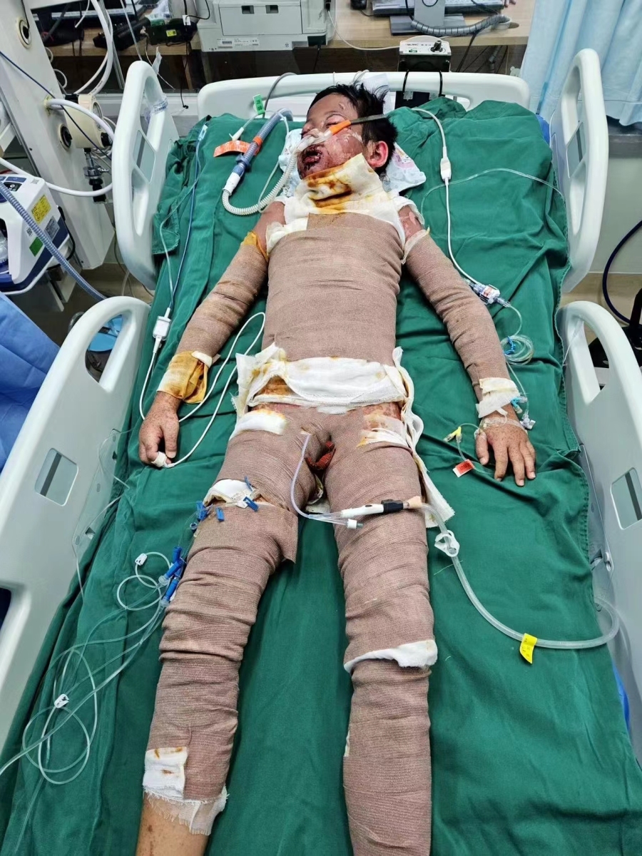 医护人员拍下了一些照片,触目惊心。他承受了多大的痛苦,难以想象。