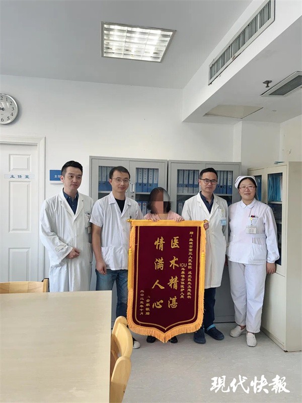 近日,仇女士给盐城市三院医务人员送了一面写有“医术精湛情满人心”的锦旗,感谢他们妙手仁心,及时挽救了她的生命。