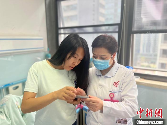 11月3日,成都市妇女儿童中心医院儿童肾脏内科护士长祝融教患儿家属在手机上使用该软件。成都市妇女儿童中心医院供图