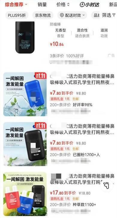 ▲电商平台销售的鼻吸能量棒