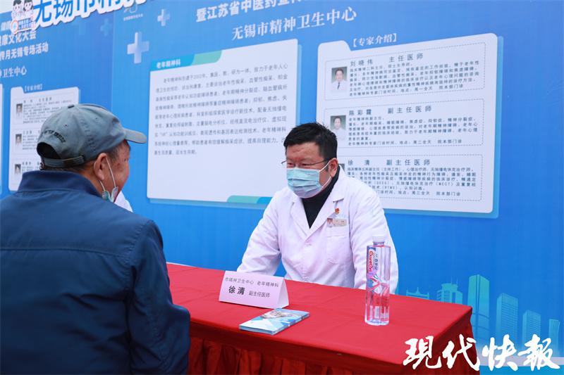 无锡市精神卫生中心老年精神科副主任医师徐清的义诊位迎来了一位高龄咨询者。这名68岁的老人一来就表示自己患上阿尔兹海默症,大老远坐着公交赶来此次义诊现场,就是想寻求解决良策。徐清闻言微微一笑,"老先生你能查到这里举办义诊,又能自己坐车前来,即便有问题,也不会很严重。"随后徐清了解了老人的日常生活状态,表示老人症状轻微,平时多与家人相邻交流、多打牌下棋参与娱乐活动即可。"如果不放心,您可以进行认知评定或做个脑部CT,防止脑萎缩脑梗阻即可。"