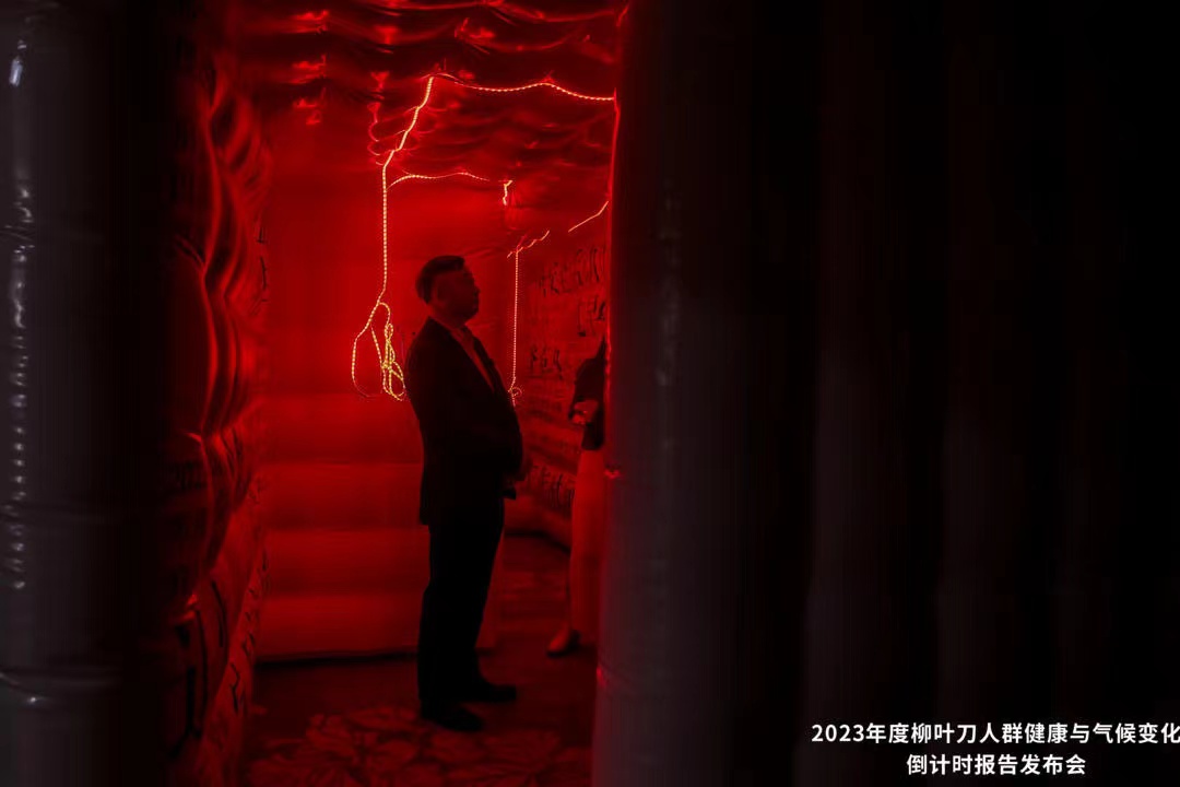 这个艺术设置呼应着此次报告的主题,意在提醒每一个参观者:“健康与危机仅一线之隔,气候问题痛及你我,每一个人都需要行动。”