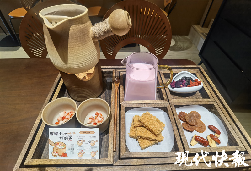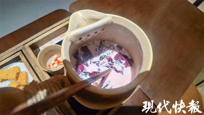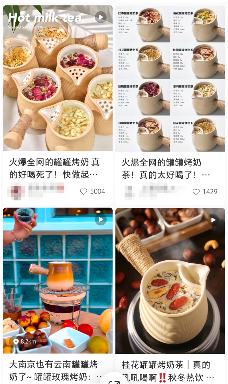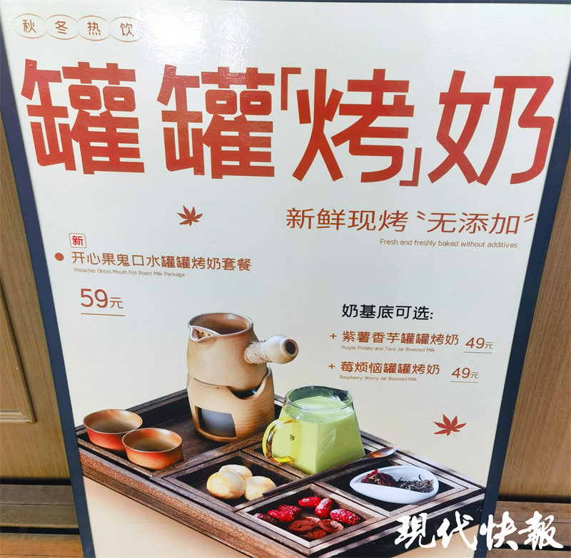 在南京夫子庙、老门东附近,都有店铺推出“罐罐烤奶”饮品套餐。老门东附近的一家小店,有3种不同口味的“罐罐烤奶”套餐,分别是开心果、紫薯香芋和草莓口味。其中,开心果风味的套餐59元,紫薯香芋和草莓风味的均为49元。套餐里包含云南滇红茶、特调奶制品、玫瑰花、枸杞、红枣、糕点等。一位店员告诉记者,“罐罐烤奶”大约推出了两周,推出后很受欢迎。“尤其是周末,顾客比较多,高峰时期要排队等1小时以上。”