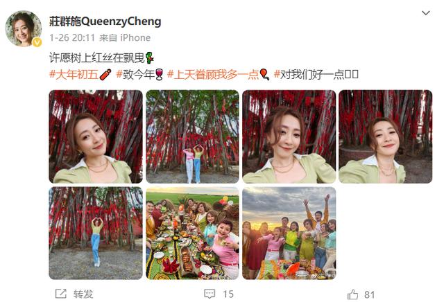 她的微博曾在今年年初许下新年愿望:希望“上天眷顾我多一点”。