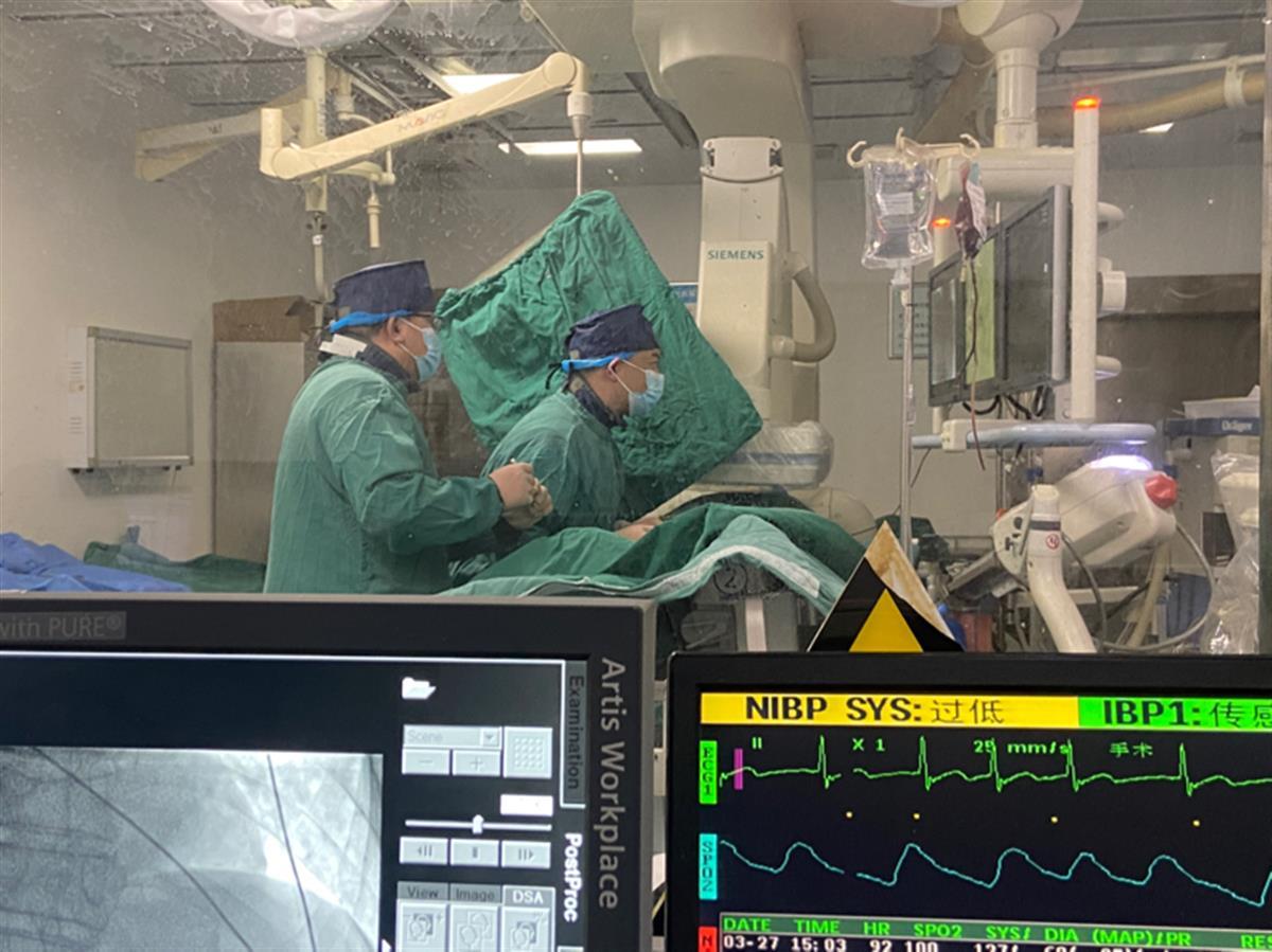 随后,刘良进立即召集介入医师吴良龙、二线护士廖靓俊组成介入团队,三人临危受命,星夜驱车赶至阳逻。抵达阳逻后发现,病人的情况比想象中更糟糕,刚上手术台患者就发生了心跳骤停,测不出血压。介入团队立即投入抢救,与阳逻重症病房及麻醉科医生紧密配合,为患者实施了气管插管、球囊辅助呼吸及心肺复苏等抢救措施。然而,患者呼吸、心跳恢复后,仍需大量输血维持。