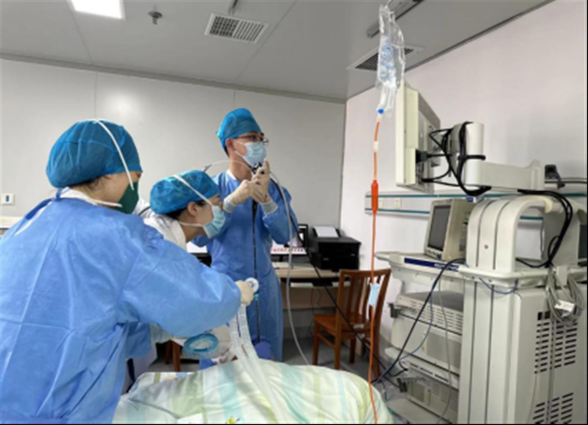 专家施行支气管镜异物取出术