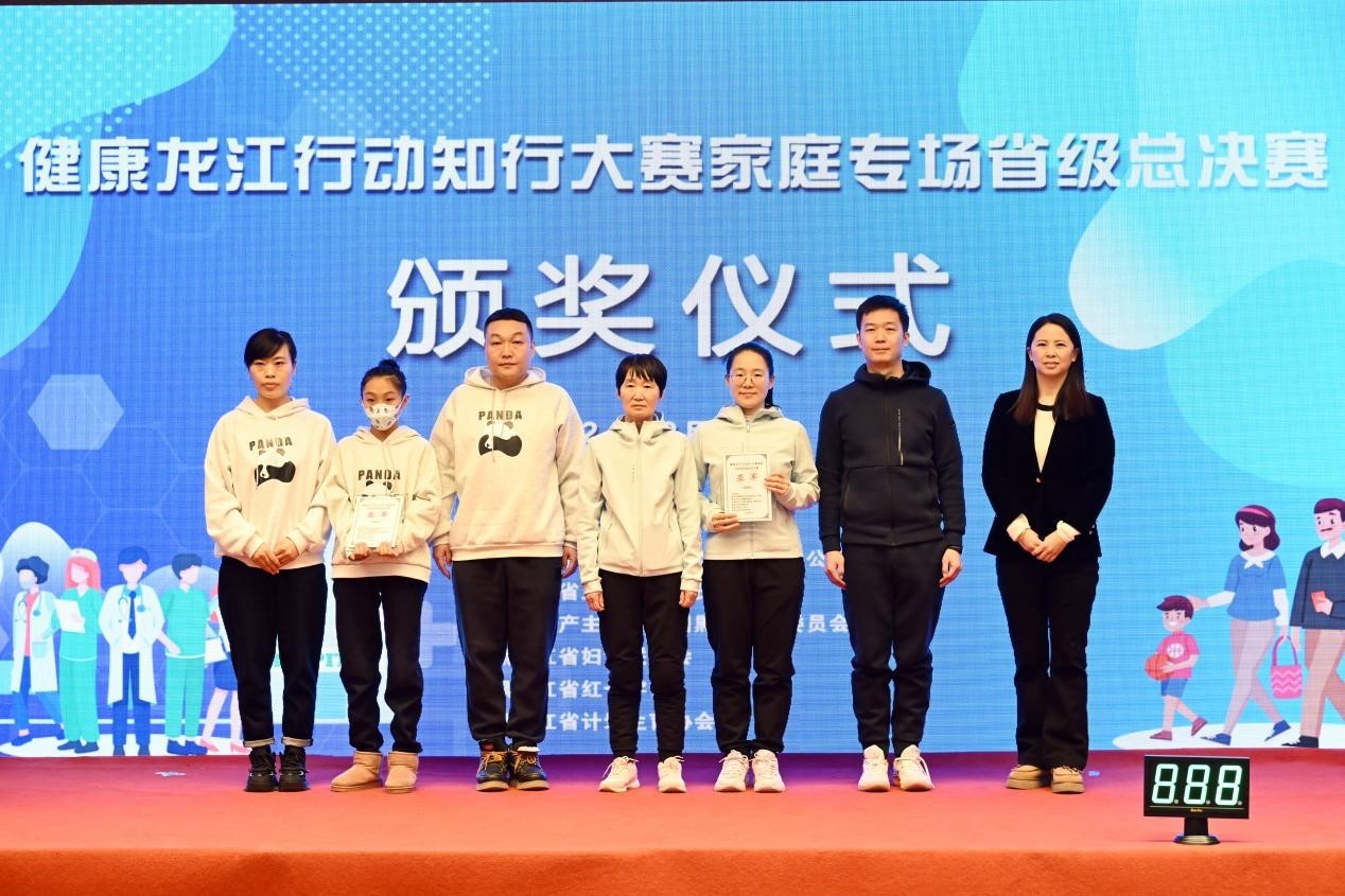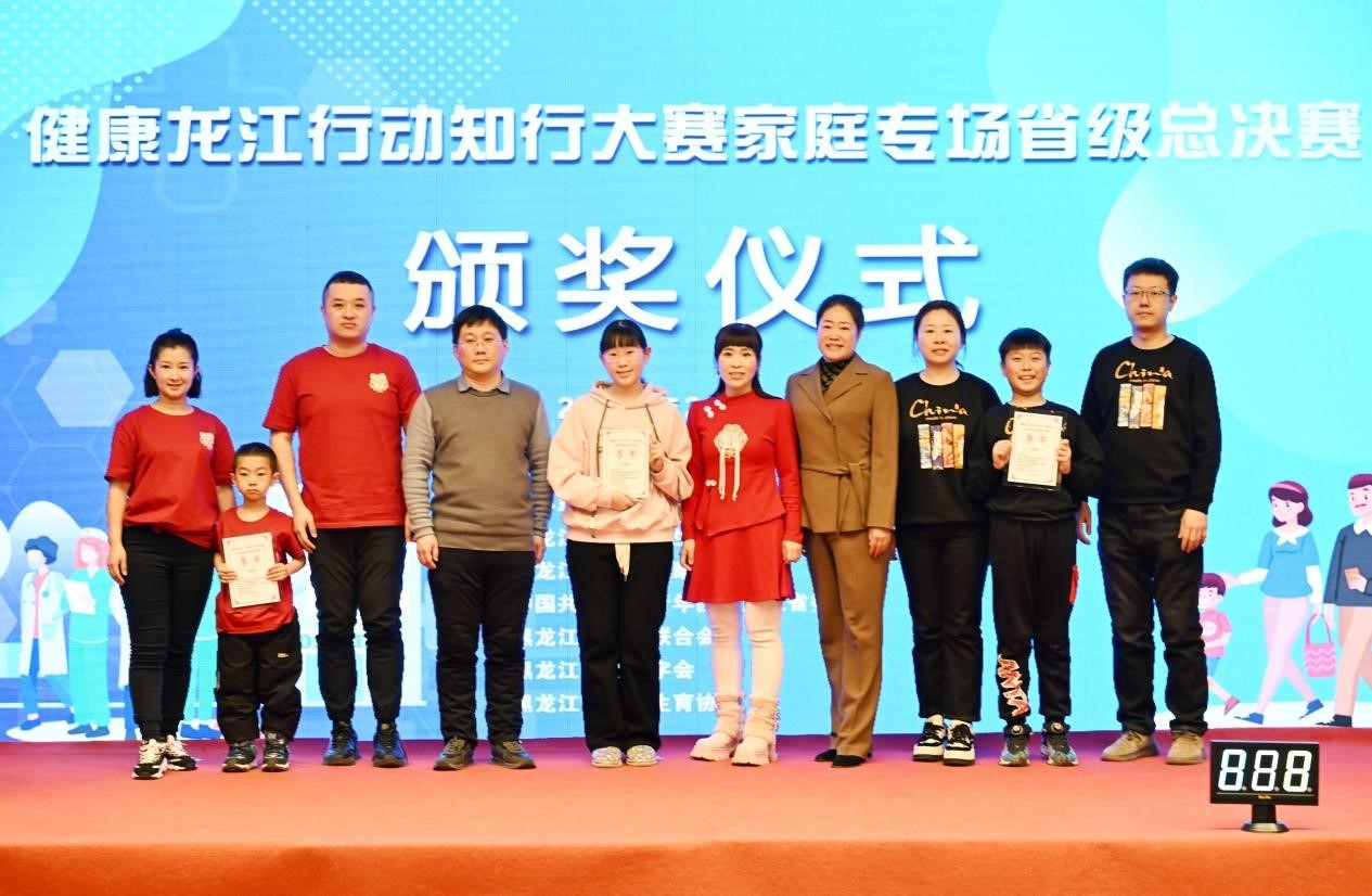 最终,七台河市、鸡西市、哈尔滨市三个家庭战队获得“健康家风家庭”称号;伊春市、齐齐哈尔市两个家庭战队获得“健康知行家庭”称号;绥化市、佳木斯市两个家庭战队获得“健康素养家庭”称号;大庆市、黑河市、大兴安岭地区三个家庭战队获得“季军”;鹤岗市、牡丹江市两个家庭战队获得“亚军”;双鸭山市家庭战队获得“冠军”。冠军双鸭山市家庭战队将代表黑龙江省参加健康中国行动知行大赛的比拼。六个主办单位相关负责同志参加活动,并为获奖家庭颁奖。