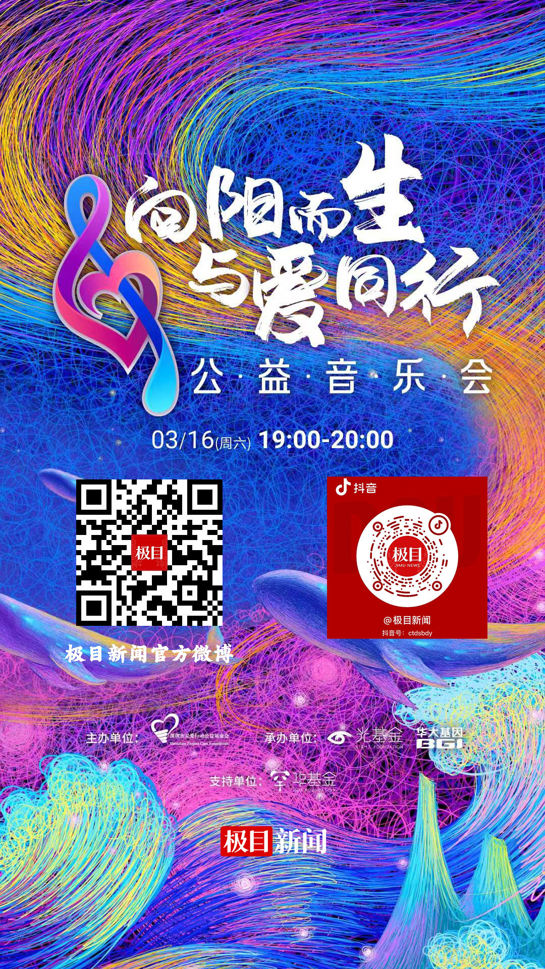 本次公益音乐会也将在极目新闻抖音、微博平台,以及人民日报健康客户端、新浪网、华大医学视频号、华大基因视频号、尹哥聊基因视频号进行同步直播,欢迎大家预约,3月16日“向阳而生,与爱同行”公益音乐会!