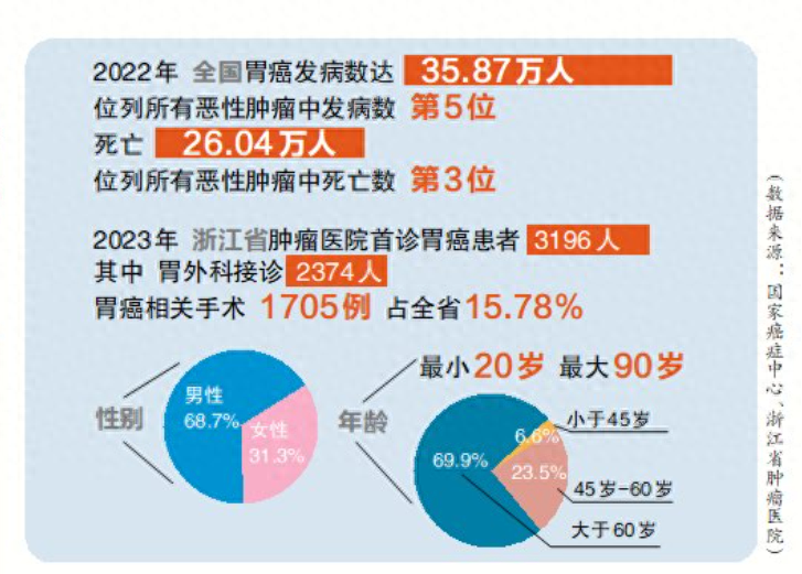 2023年,浙江省肿瘤医院胃外科做了1705例胃癌手术,手术量排名全省第一,占比15.78%,而在2018年,胃癌手术量为900例。
