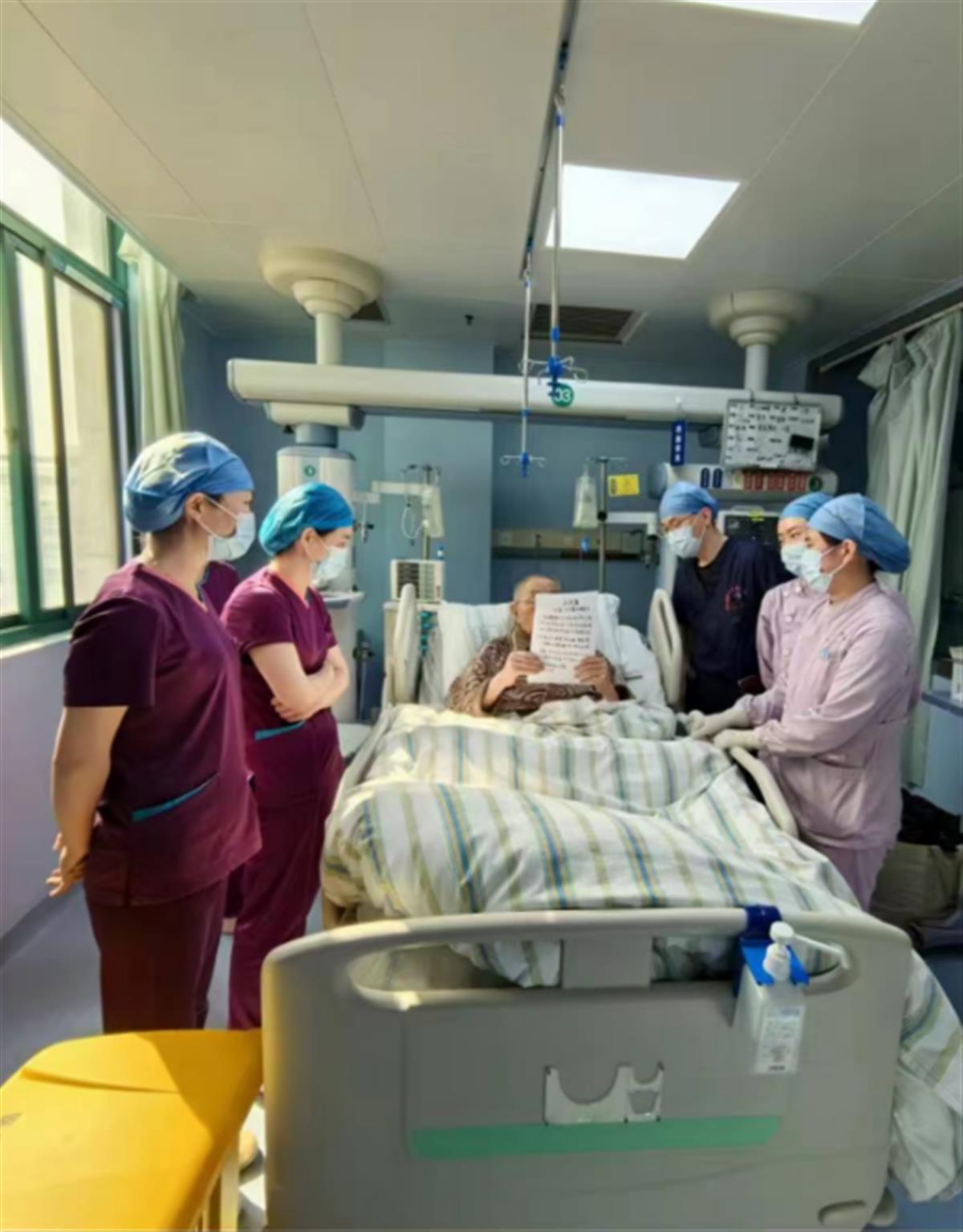 王爷爷出院前向医护人员表示感谢(通讯员供图)